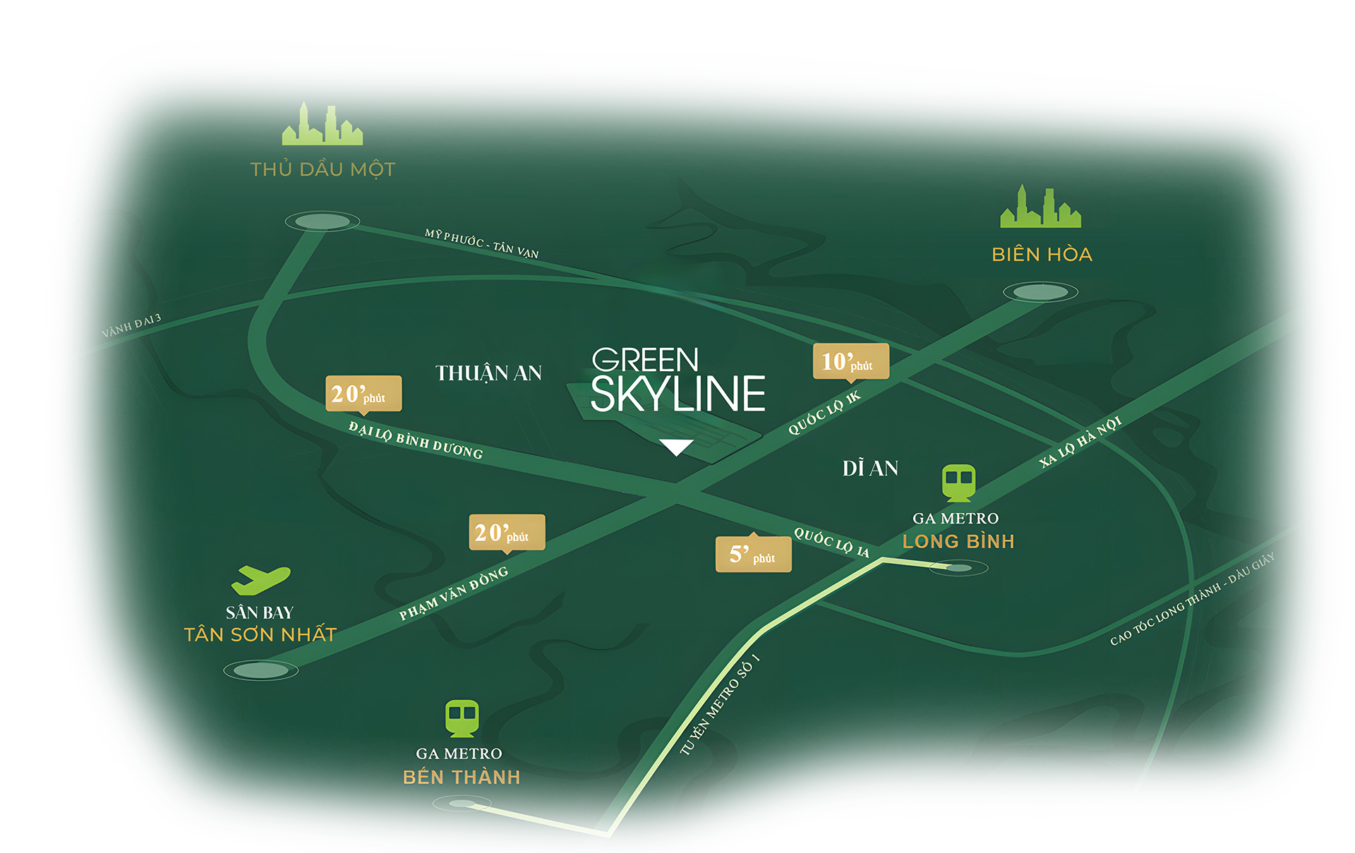 - ➡ Lợi thế vị trí này giúp Green Skyline Dĩ An trở thành điểm an cư lý tưởng cho cả cư dân làm việc tại TP.HCM lẫn người đầu tư tìm kiếm giá trị tăng trưởng dài hạn.
